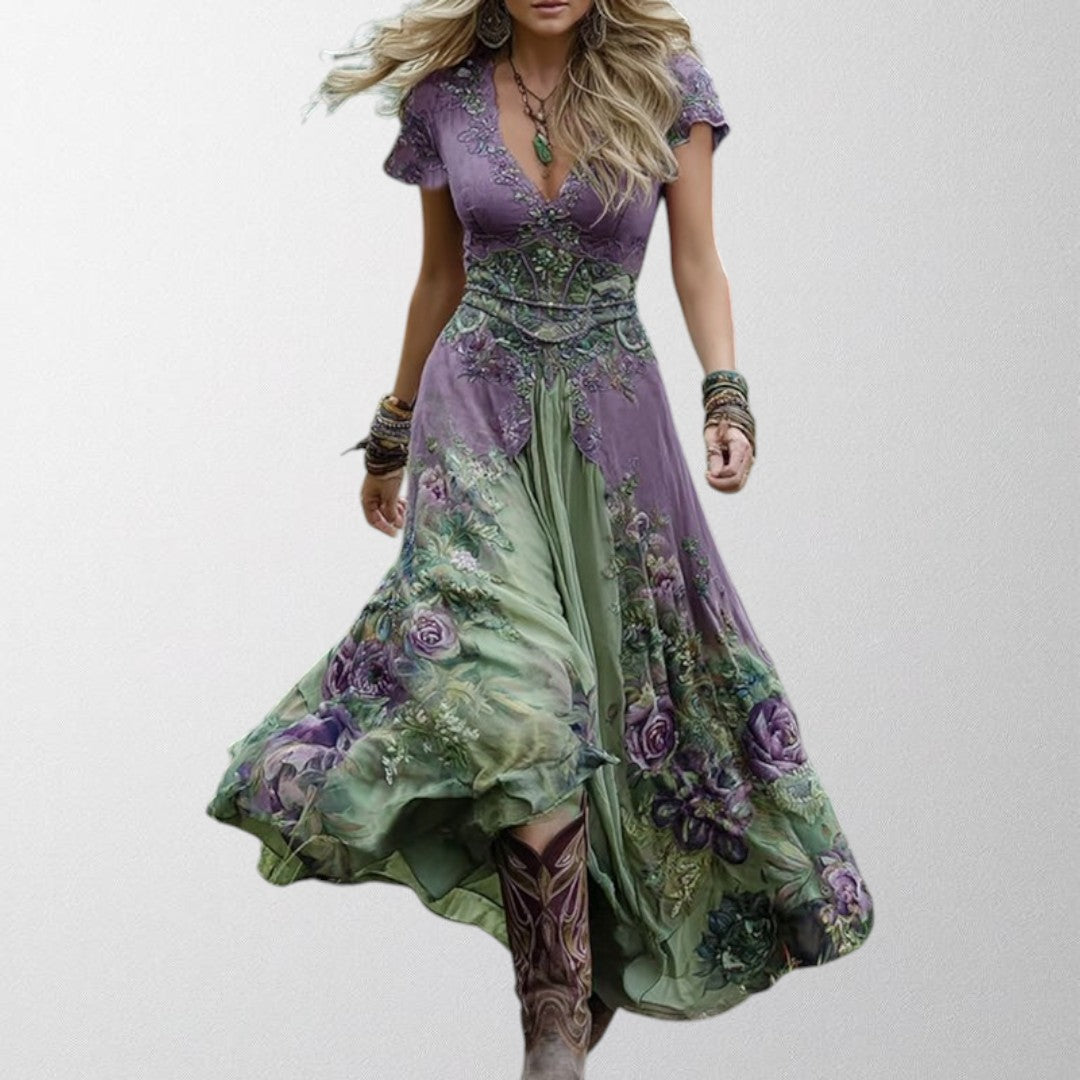 Olivia - Floral Printed Short Maxi Dress